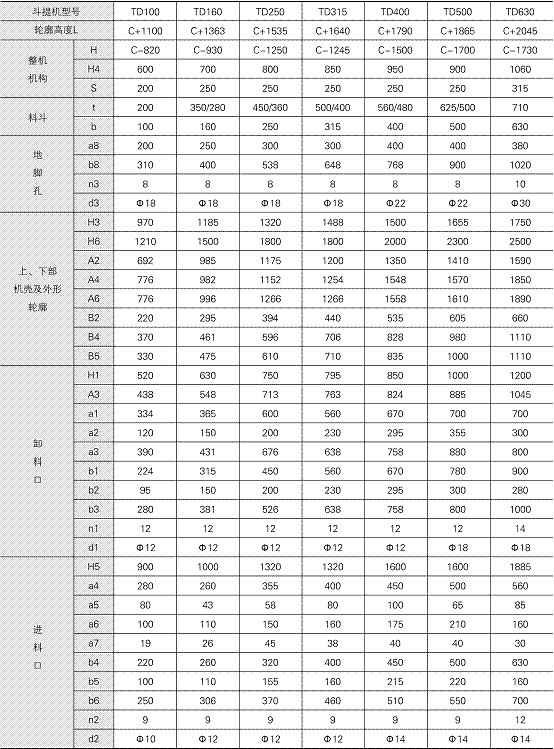 TD系列斗式提升機(jī)技術(shù)參數(shù)表: