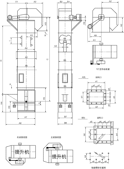 1.斗提機(jī)下部區(qū)段的支撐面,必須保證坐落在基礎(chǔ)的水平面上。